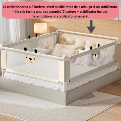 Despre Bariera protectie pat culisanta cu buzunar XXL 140 cm Kidizi Funny Bear Beige, certificata EN71, inaltime reglabila 72-100 cm, model interconectabil