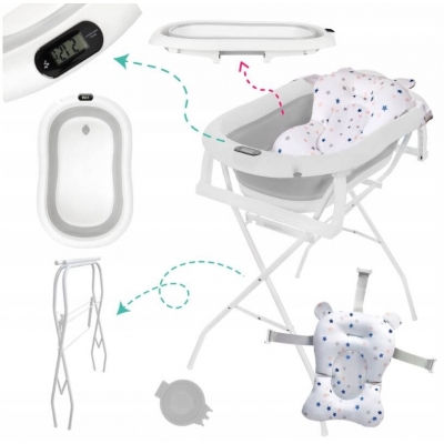 Cada pliabila Genua cu stand inlus, termometru electronic si perna de baie detasabila poate fi folosita de la nastere si pana la 24 luni.