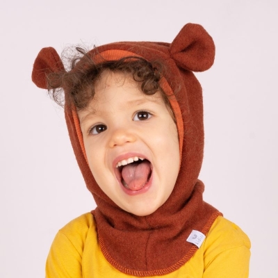 Despre Cagula copii din lana fleece dublata cu bumbac certificat, Kidizi Teddy Terracotta 2-3 ani, model ajustabil