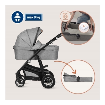Despre Carucior 3 in 1, Lionelo, Bianka, Transformabil, Cadru aluminiu, Cu landou si salteluta moale, Include saculet de picioare, Husa de ploaie si tantari, Geanta pentru parinti, Sustine 22 kg, 0 luni+, EN1466:2014+AC:2015, EN1888, Gri