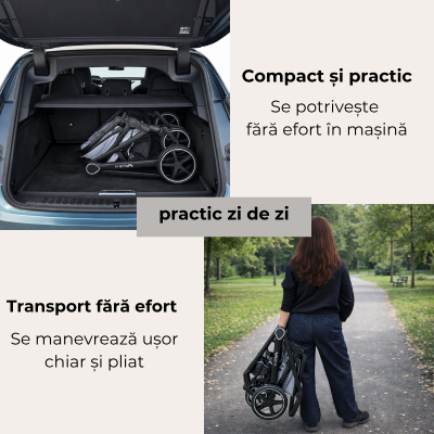 Designul transformabil permite trecerea rapida intre configuratii, fara efort, iar cadrul usor si rezistent asigura manevrabilitate excelenta atat in oras, cat si in plimbari zilnice.