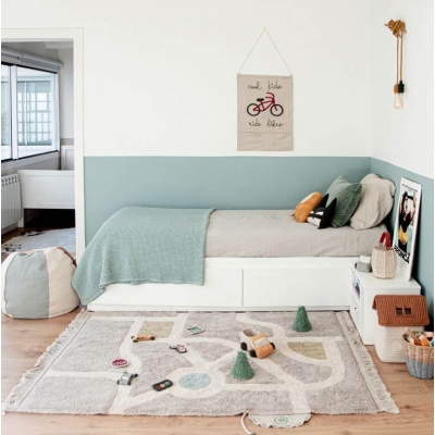Despre Covor copii din bumbac cu pista si accesorii 3D 120x170 cm Lorena Canals EcoCity, gri, lavabil la masina de spalat