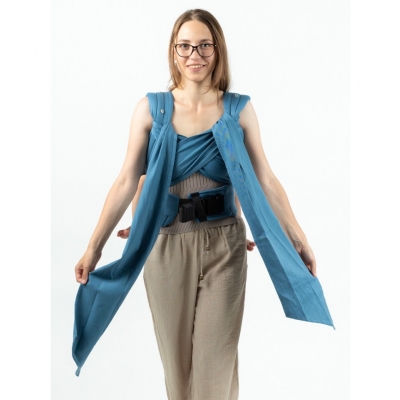 Bretelele din material țesut, parțial buretate, pot fi legate cu ușurință în diverse moduri care pot asigura un plus de confort - lărgite pe umeri pentru a optimiza distribuția egală a greutății copilașului, sau înfășurate în jurul acestuia pentru a asigura o extra susținere a șezutului ori un șezut mai adânc.
