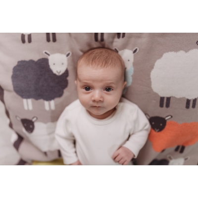 Despre Paturica tricotata din bumbac cu oite Gri Bizzi growin