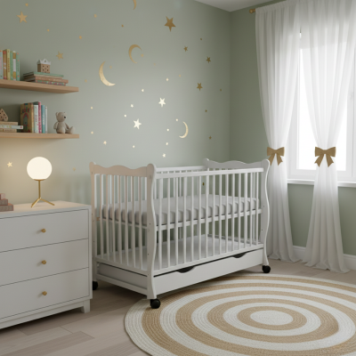 - Sertar spatios cu glisare pe sine. Sertarul ofera spatiu pentru depozitarea accesoriilor bebelusului si gliseaza lin pe sine metalice, oferind acces rapid la continut. Designul permite organizarea eficienta a camerei.