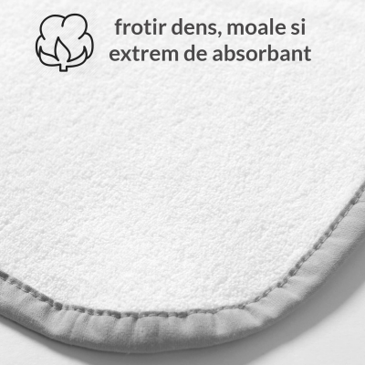 Un prosopel moale confectionat din frotir pufos cu putere de absorbtie mare, perfect pentru a-l inveli pe bebe cand iese de la baita.