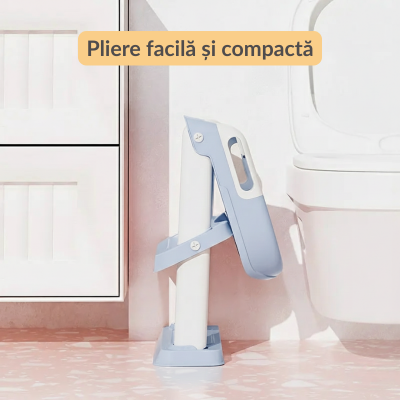 Se pliaza rapid pentru depozitare compacta – Cand nu este folosit, se pliaza pana la o inaltime de doar 35 cm, iar platforma pliata de 37.5 cm il face usor de pus in baie, langa toaleta sau intr-un dulap ingust.