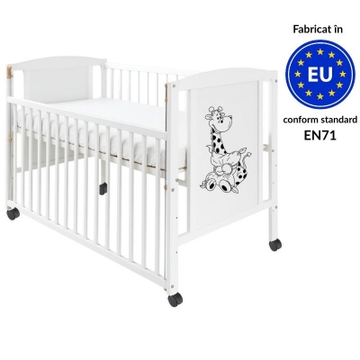 Realizat din lemn masiv de pin, cu laterala culisanta si roti cu sistem de frana, acest model este conceput pentru a oferi confort, siguranta si libertate de miscare in primii ani de viata ai bebelusului.