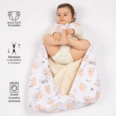 Un sac de dormit pentru copii practic si usor de utilizat pe care il veti putea adapta cresterii copilasului si pe care il veti putea folosi de la aproximativ 6 la 24 luni, avand o lungime de 92 cm.