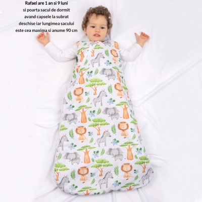 Despre Sac de dormit copii din bumbac reglabil 0-24 luni Kidizi Safari, 1 tog