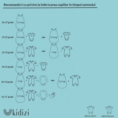 Imbracamintea de sub saculetul de dormit trebuie sa difere in functie de temperatura din camera conform recomandarilor din tabel. -