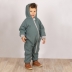 Despre Salopeta overall din lana fiarta dublata cu bumbac, Kidizi Old Mint, prevazuta cu gluga si mansete transformabile in manusi