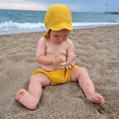 Despre Sapca pentru copii din muselina cu cozoroc si protectie gat Kidizi Maitre curry 3-18 luni
