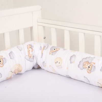 Setul include 2 aparatori de 180 cm, prevazute cu un snur la ambele capete, astfel incat se pot uni si impreuna acopera toate lateralele unui patut de dimensiunea120x60 cm
