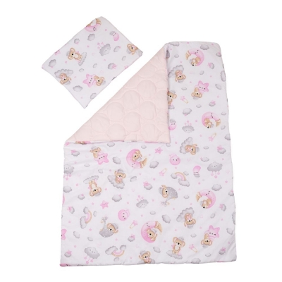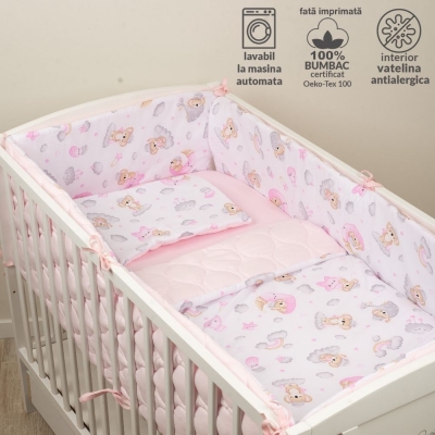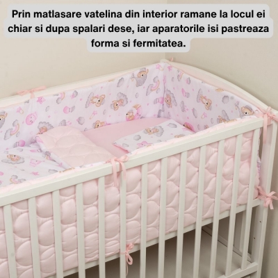Despre Set lenjerie patut 120x60 cm 5 piese Kidizi Koala Dreams Pink, model matlasat, include perna, plapumioara, aparatoare si cearceaf